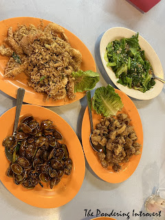 This is by the way, Chinese halal food to cater to the locals there. I love the squid. It's really bad for my diet but heck, I'm not there everyday, I don't eat it everyday. Everything was good except for the Lala that doesn't taste kamheong at all. This was also RM70+ haha. Prawns, squids, lala and vegetables.